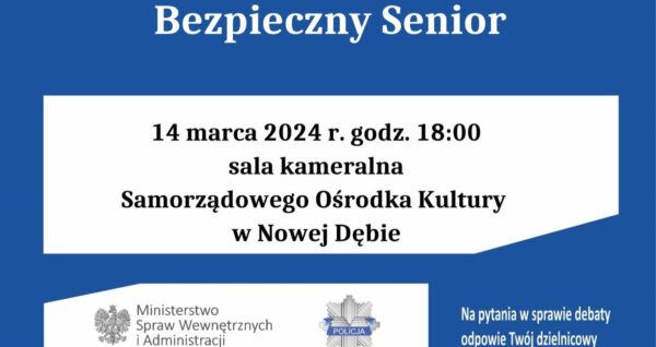 Zapraszamy na spotkanie dotyczące bezpieczeństwa seniorów. W programie: Sposoby działania sprawców przestępstw popełnianych na szkodę osób starszych, Wpływ Krajowej Mapy Zagrożeń …